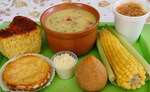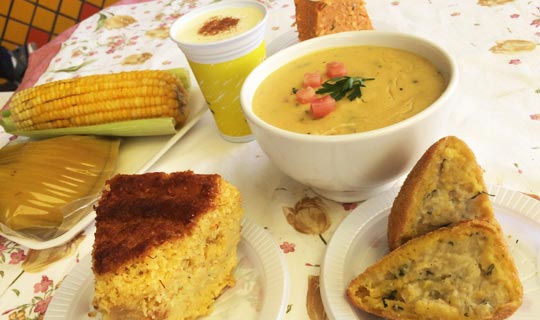 Entre as dicas gastronômicas estão o suco de milho servido gelado ou quente (com cobertura de canela), as pamonhas quentinhas nas versões doce e salgada, o milho cozido com manteiga, famosa sopa de milho com frango desfiado e o cremoso pudim de milho!