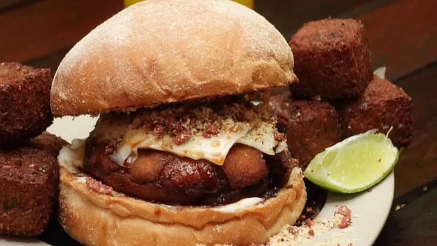O cardápio vai além dos lanches clássicos e oferece opções vegetarianas, veganas e porções deliciosas — como os dadinhos de kibe vegano.