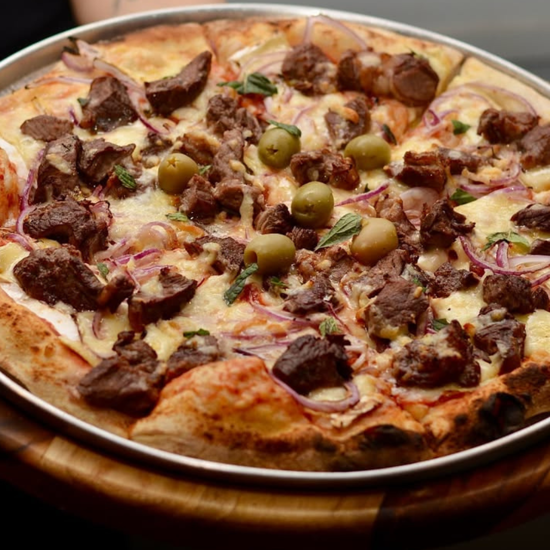 O cardápio inclui opções como calabresa especial, mignon uai, caprese, costela y urugai, mignon piemontese e muitas outras. Acompanhando a refeição, dá para escolher uma entradinha também!