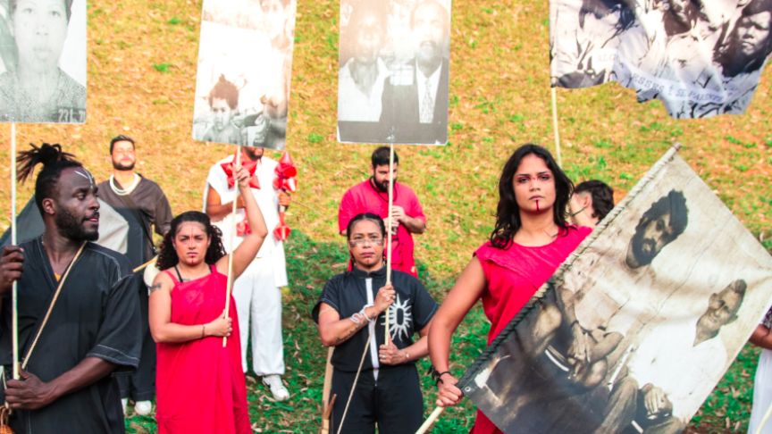 O Coletivo Estopo Balaio propõe reflexões sobre ancestralidade e identidade por meio de música, dança e narrativas inspiradas em manifestações populares brasileiras.