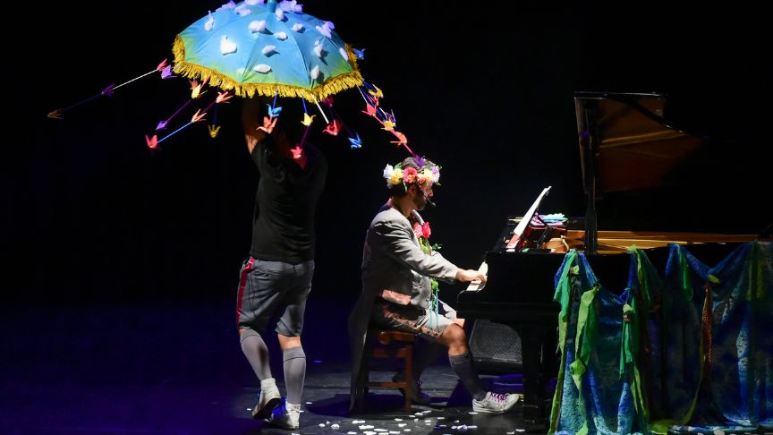 Durante a trama, o espetáculo reúne música de concerto e teatro de bonecos, transformando o piano em um palco onde o pequeno elefante Babar desbrava diversas aventuras.
